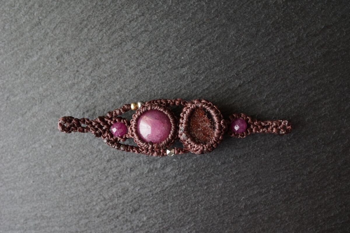 ルビー&レッドガーデンクォーツのマクラメブレスレット - fruit harvest - BROWN【一点物】