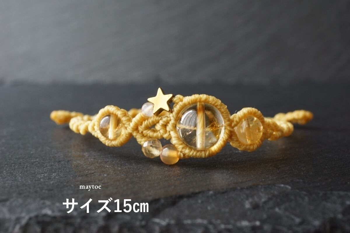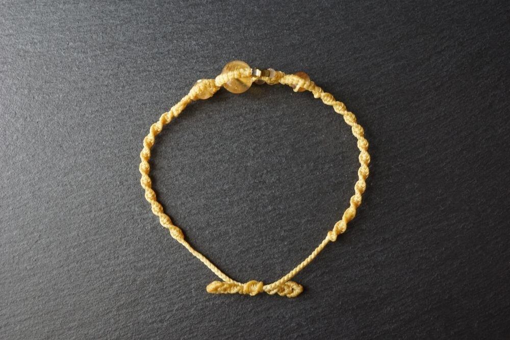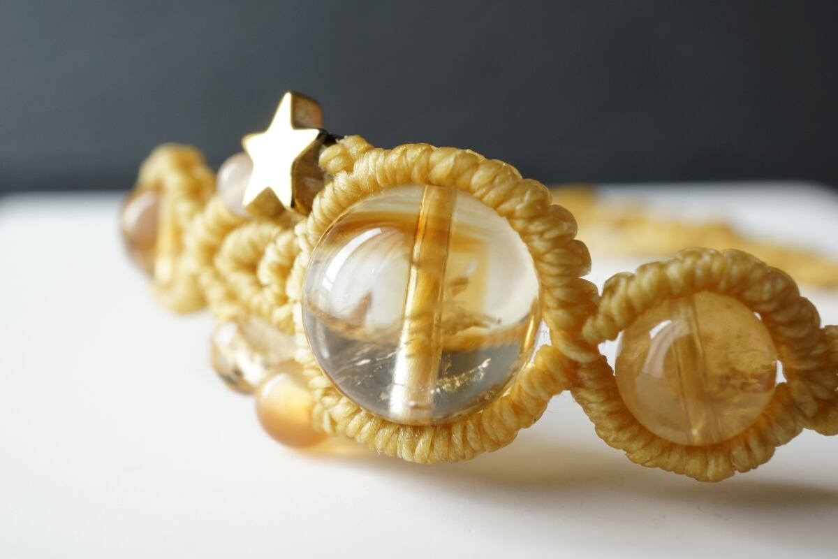 気持ちを前向きにし、はつらつとした積極性をもたらすと言われる石「シトリン(黄水晶)」のマクラメブレスレット。