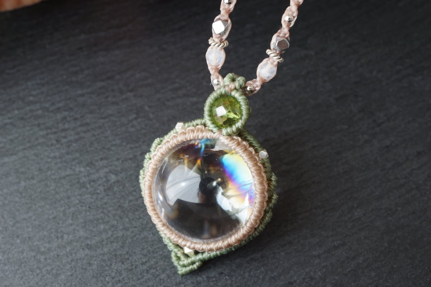 レインボー水晶(アイリスクォーツ)&ペリドットのマクラメネックレス【一点物】