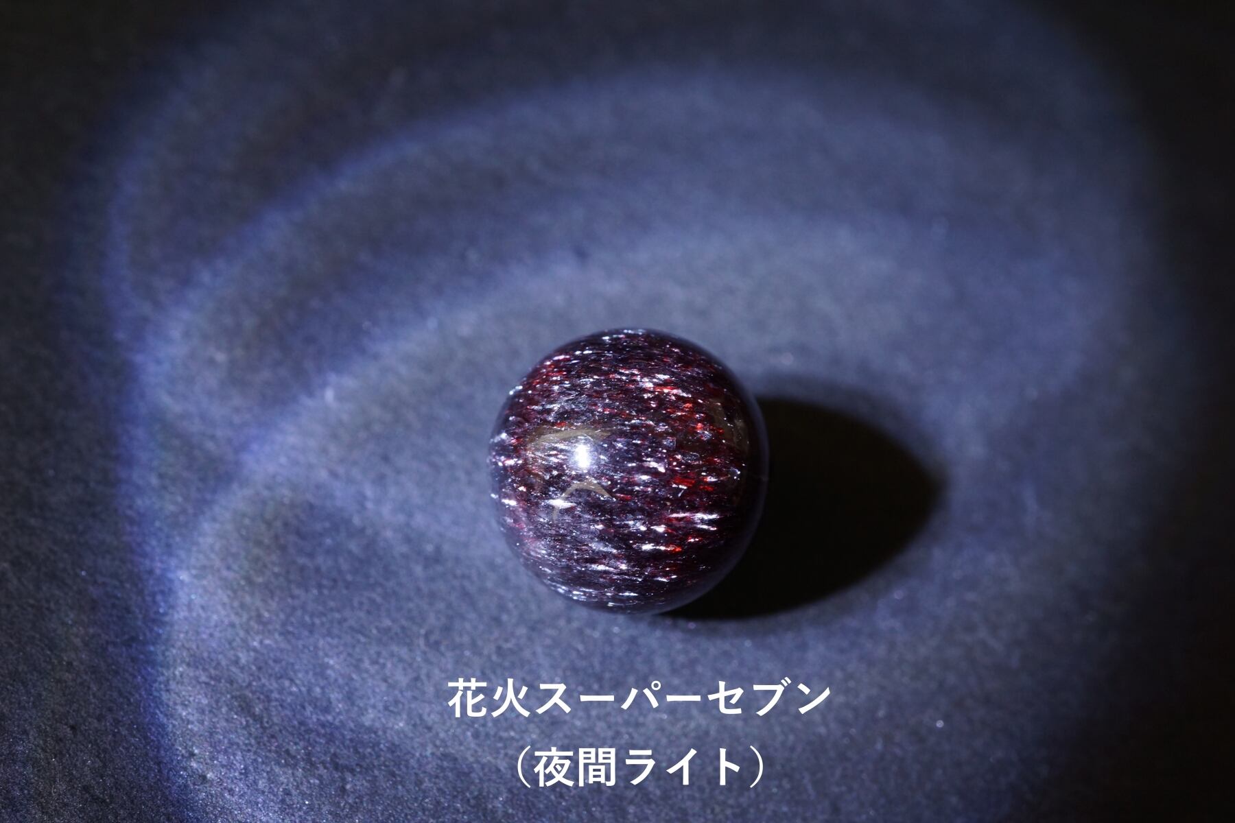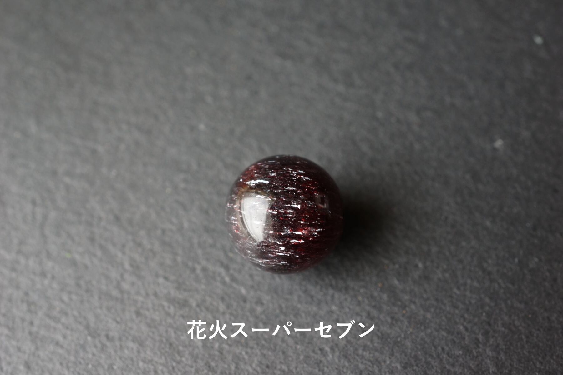通常のスーパーセブンに内包されている赤~黒のレピドクロサイトの他に針状のヘマタイトが内包されており、この針がまるで花火のように銀色に美しく煌めくため「花火スーパーセブン」と名付けられた天然石。