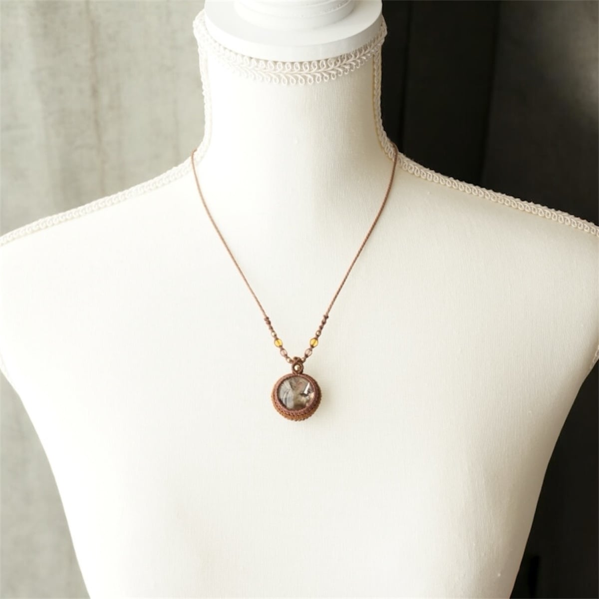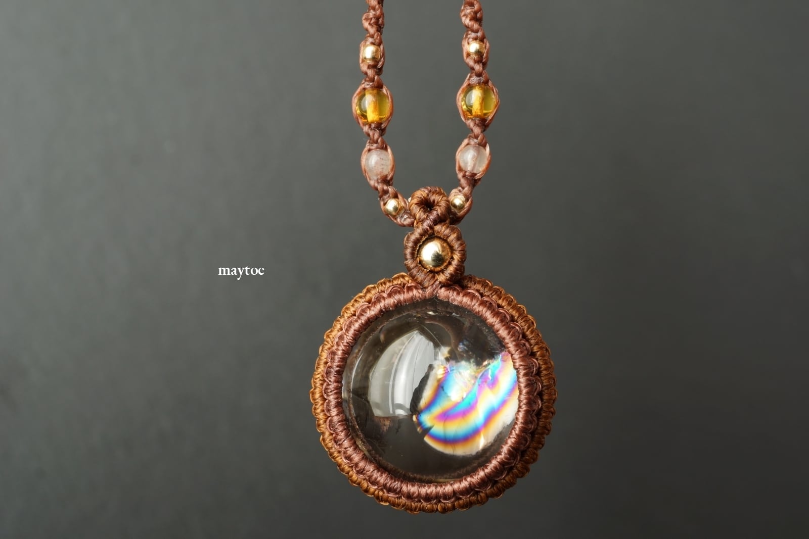 レインボースモーキークォーツ(スモーキーアイリスクォーツ)のマクラメネックレス - antique doll -
