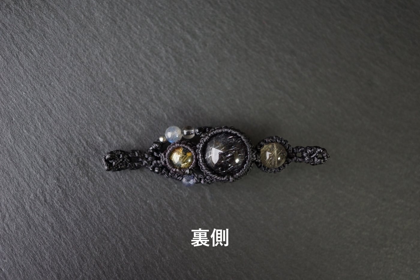 針状の内包物が芸術的に織りなす希少な天然石3点を組み合わせ、とっておきの一品に仕上げました。*花火スーパーセブン・太陽放射タイチンルチルクォーツ・トルマリンクォーツ