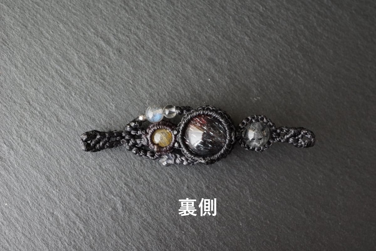 針状の内包物が芸術的に織りなす希少な天然石3点を組み合わせ、とっておきの一品に仕上げました。*花火スーパーセブン・太陽放射タイチンルチルクォーツ・トルマリンクォーツ