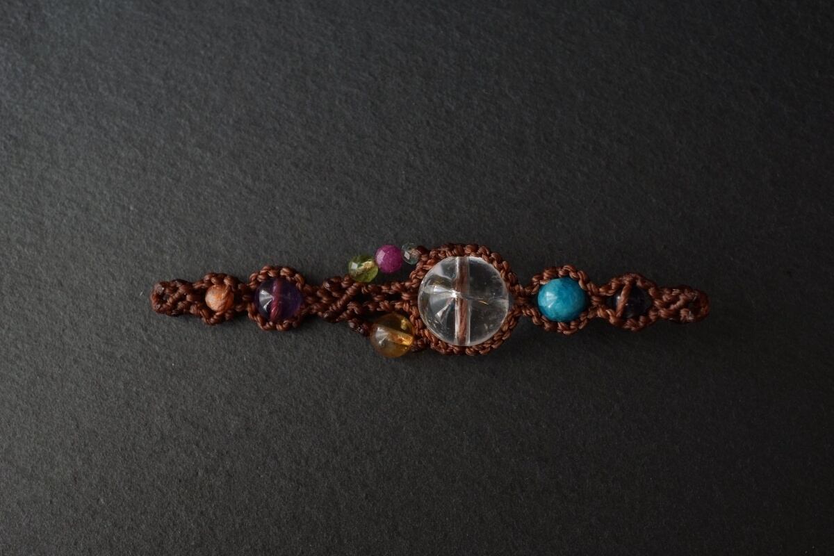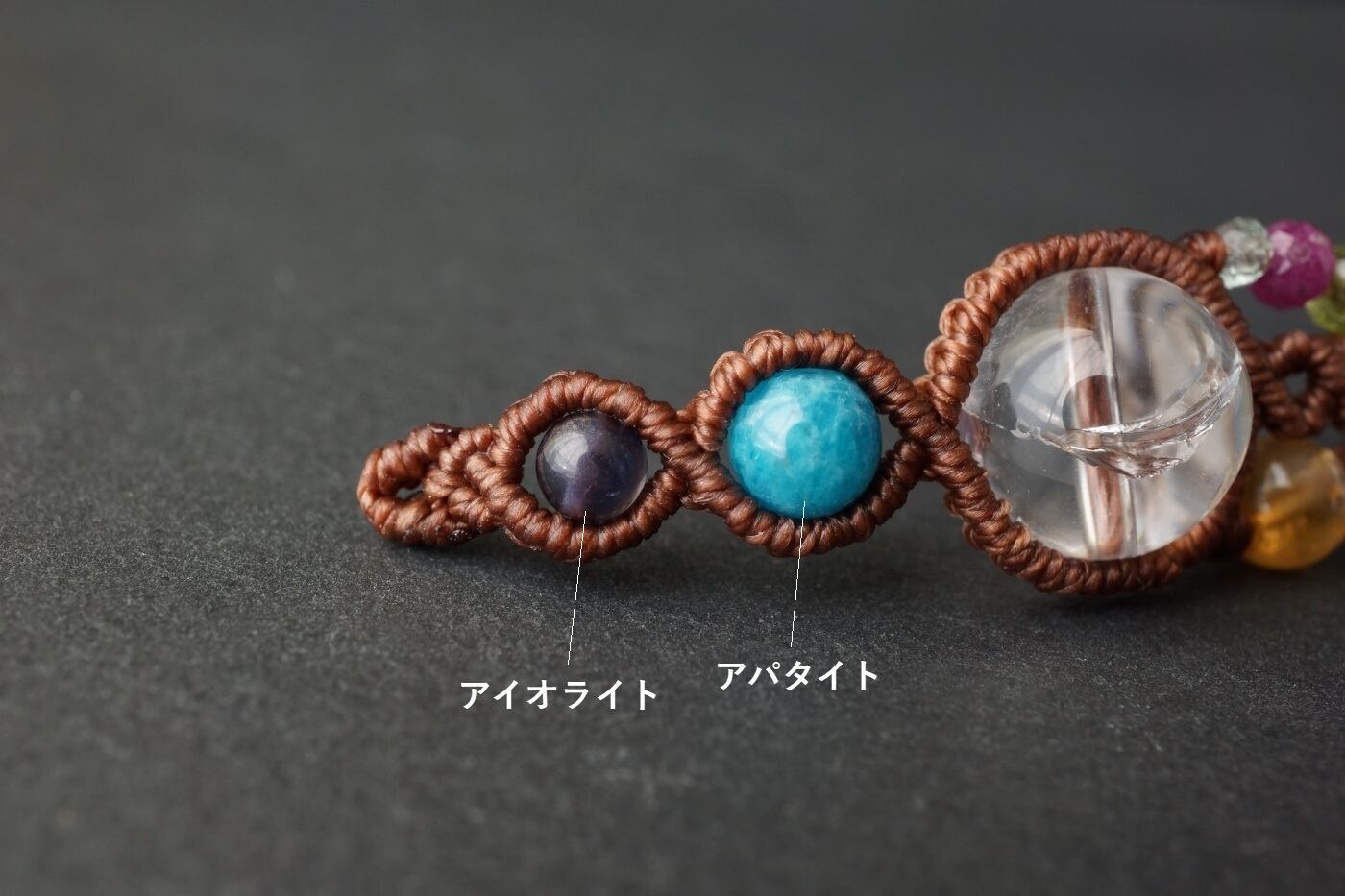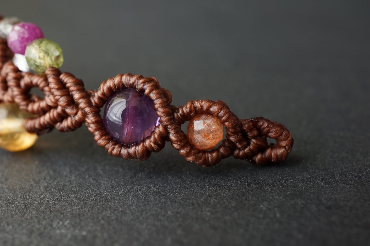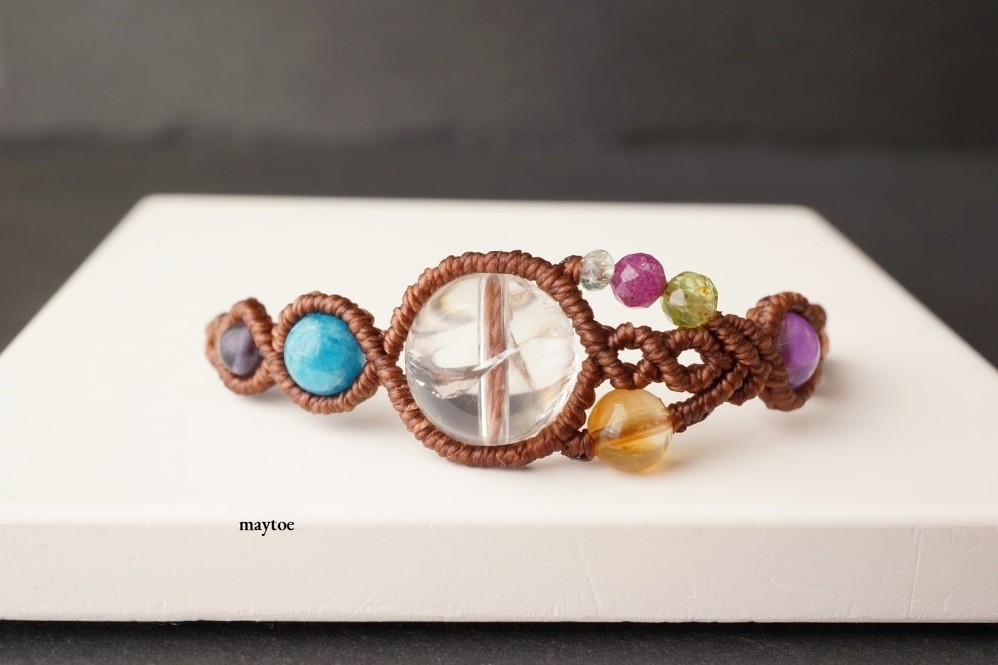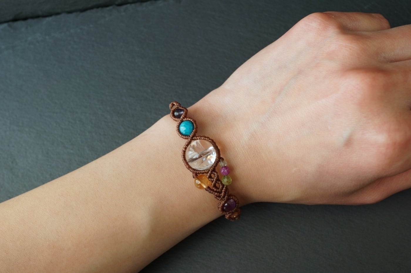 七種類の天然石を組み合わせた厄除けお守りマクラメブレスレット。