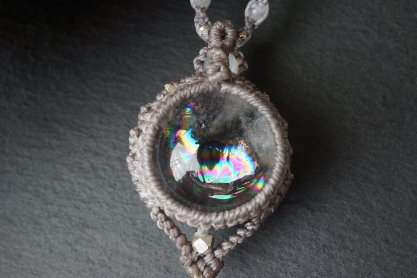 レインボー水晶(アイリスクォーツ)のマクラメネックレス ~ crystal glass ~【一点物】