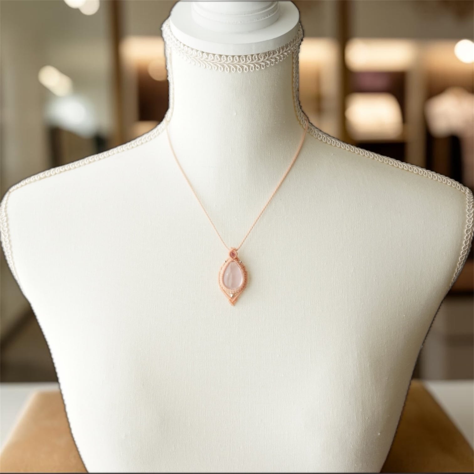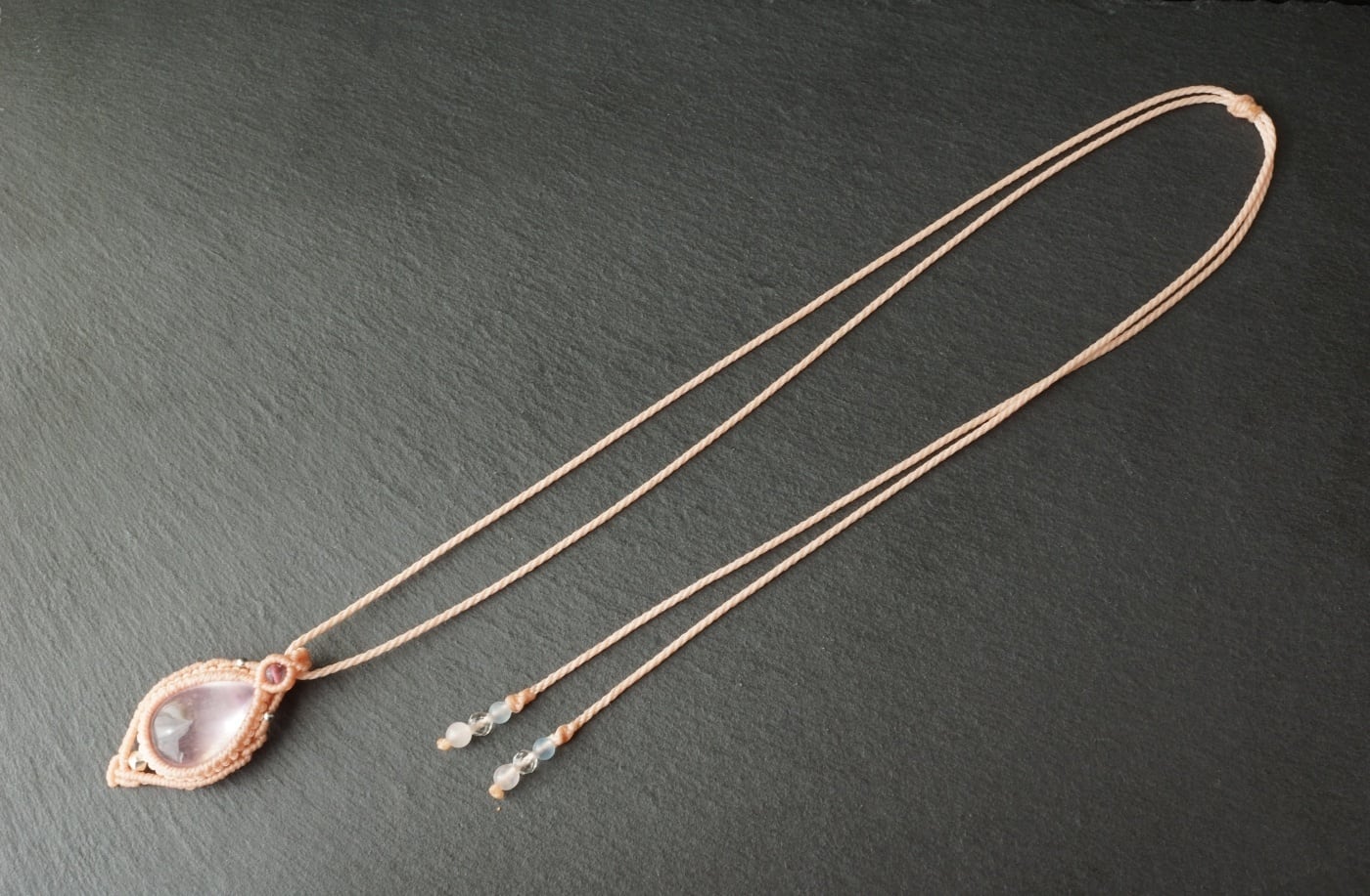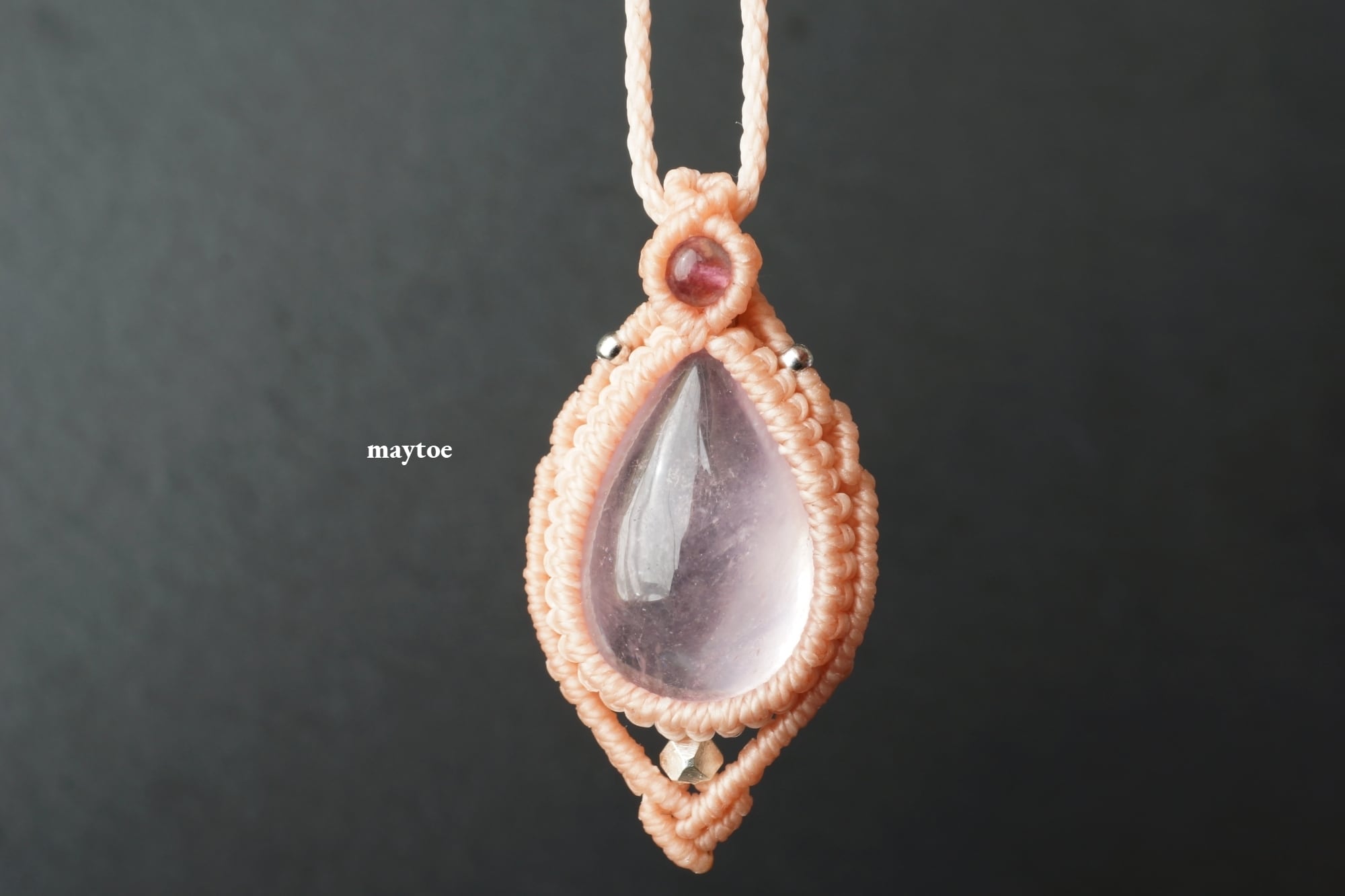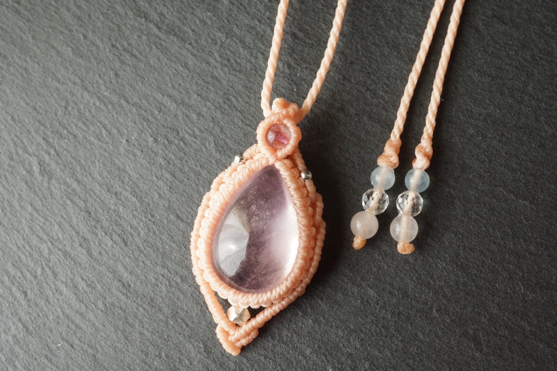 しずく型モルガナイトのマクラメネックレス ~ 桜風 ~【一点物】