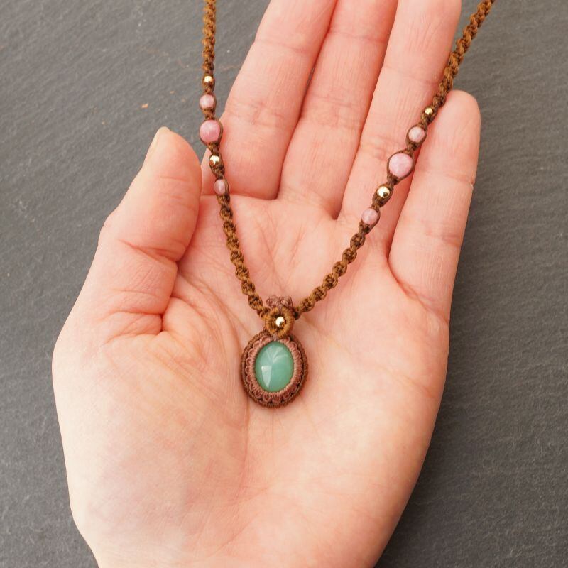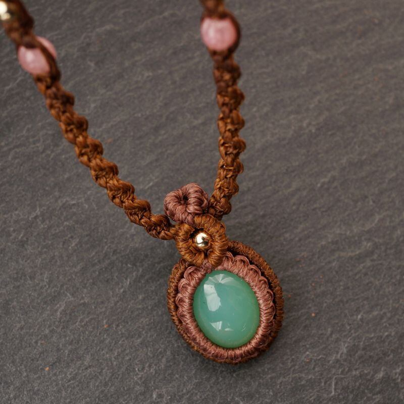 クリソプレーズ【オーストラリア産】のマクラメネックレス - Inca Rose -