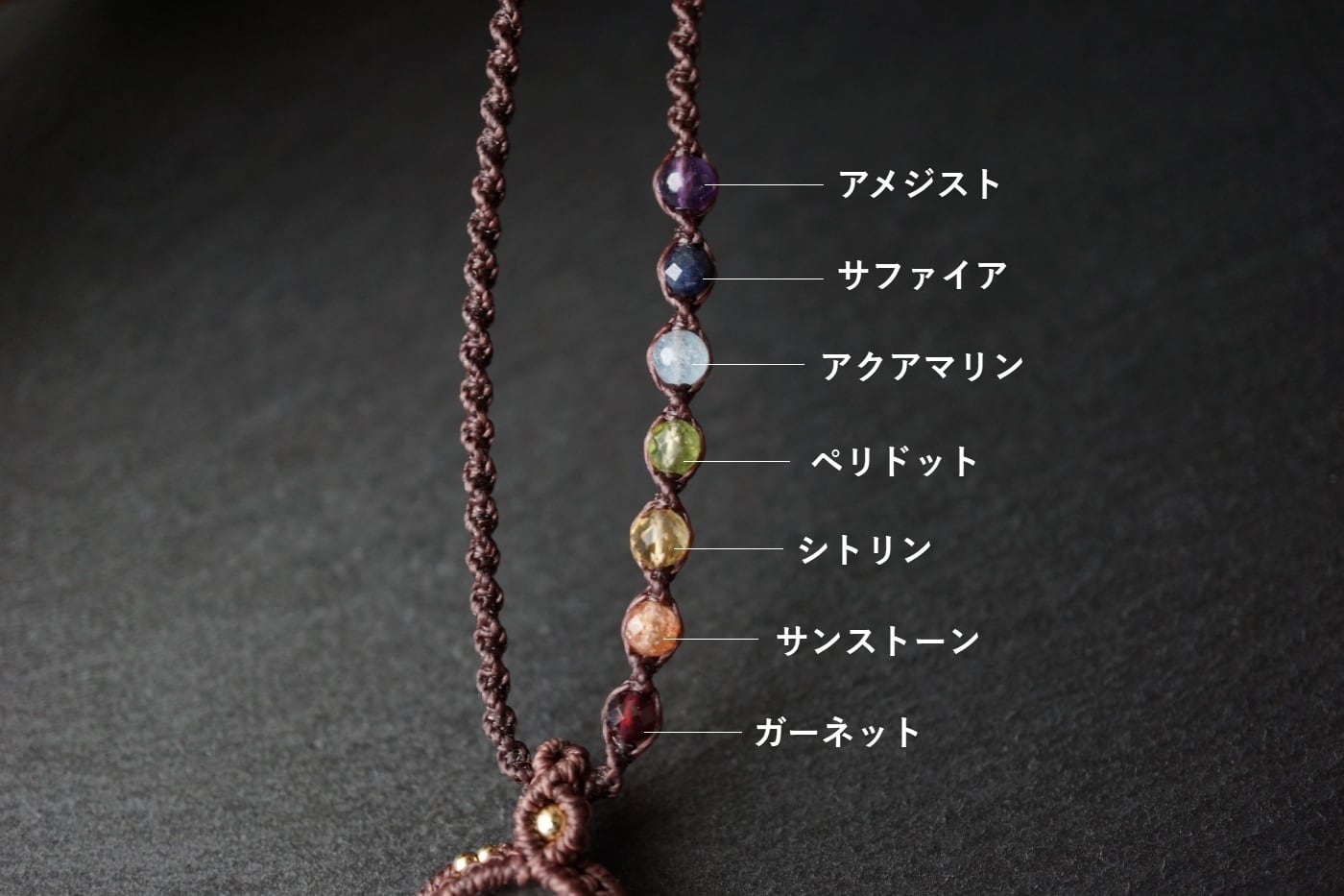 宝石質クリスタル&7色天然石厄除けネックレス<厄年のお守りに>【紐色チェンジ可】