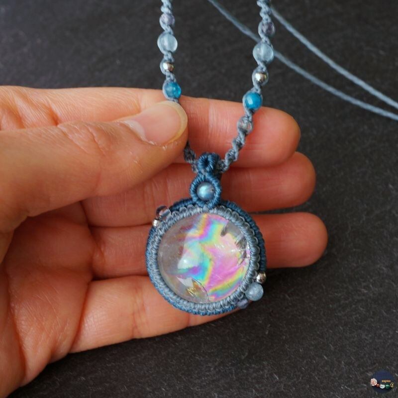 溢れるような虹☆レインボー水晶(アイリスクォーツ)のマクラメネックレス ~波音の夢~