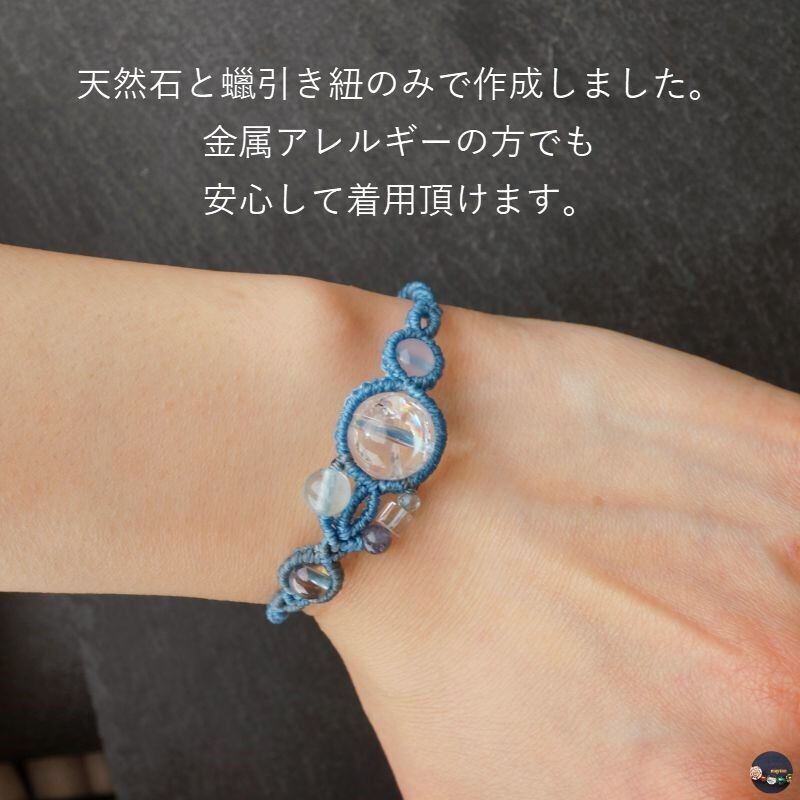 虹の見える青空~ レインボー水晶(アイリスクォーツ)のマクラメブレスレット