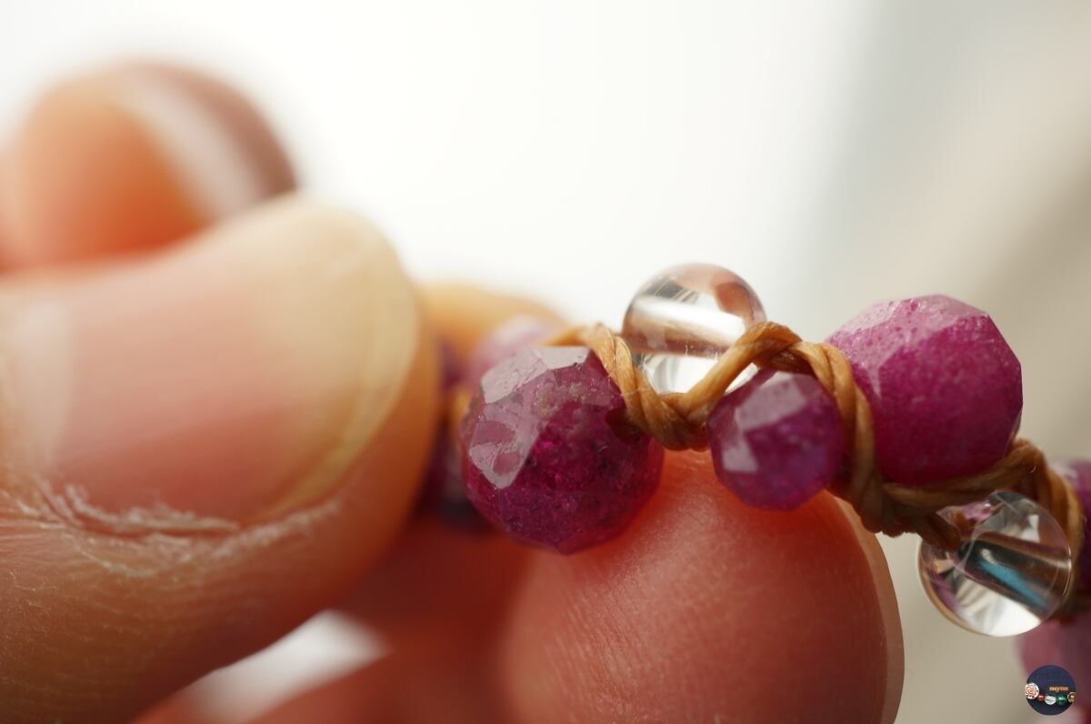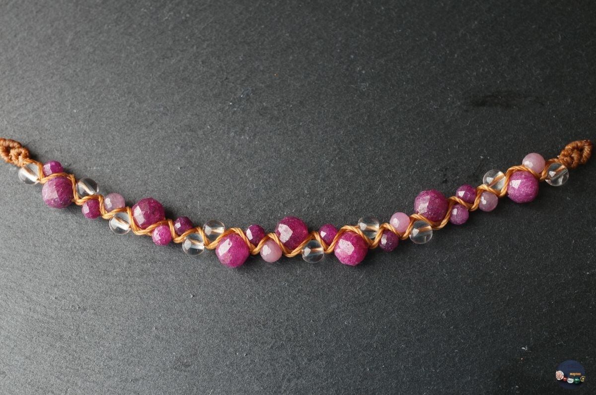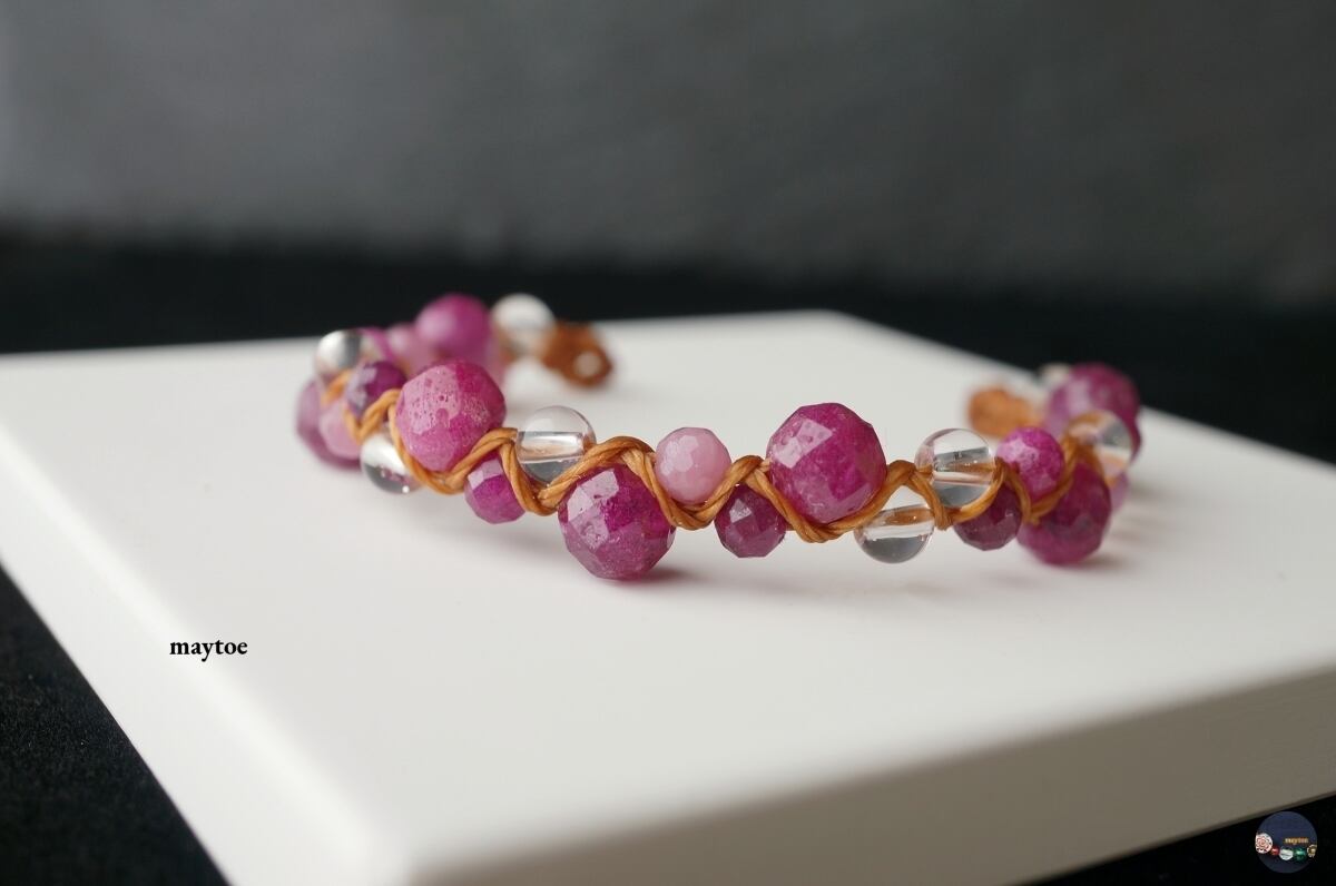 ルビーの明暗を意識しながら配色したマクラメブレスレット。