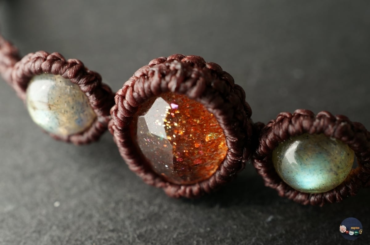 宝石質サンストーンの一点物マクラメブレスレット<太陽のお守り>