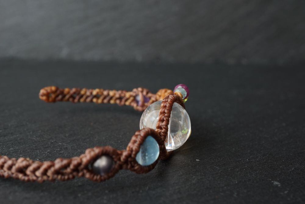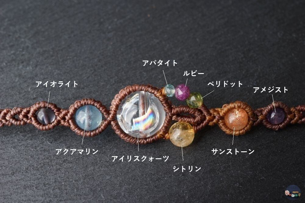 七種類の天然石を組み合わせた厄除けお守りマクラメブレスレット。