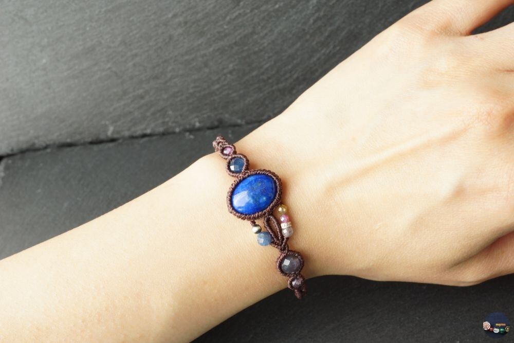 ラピスラズリ&マルチカラーサファイアのマクラメブレスレット - 星空の旅 -