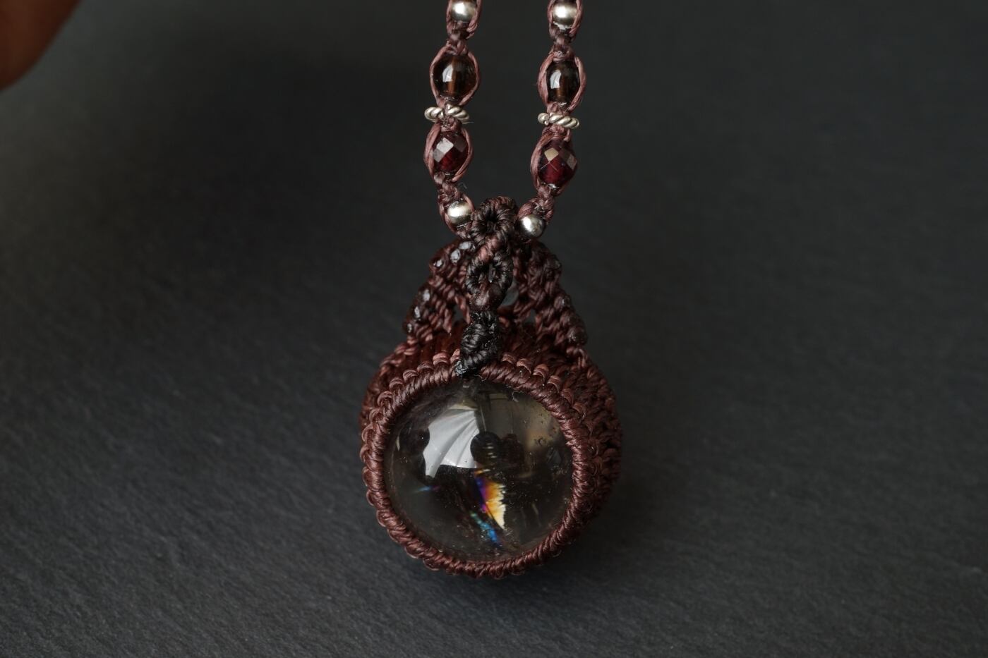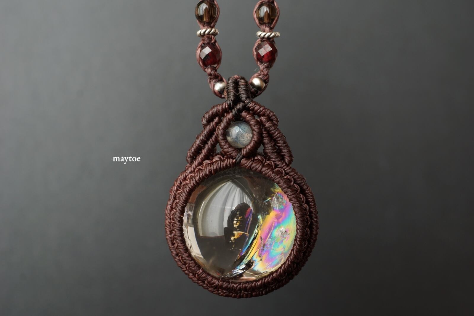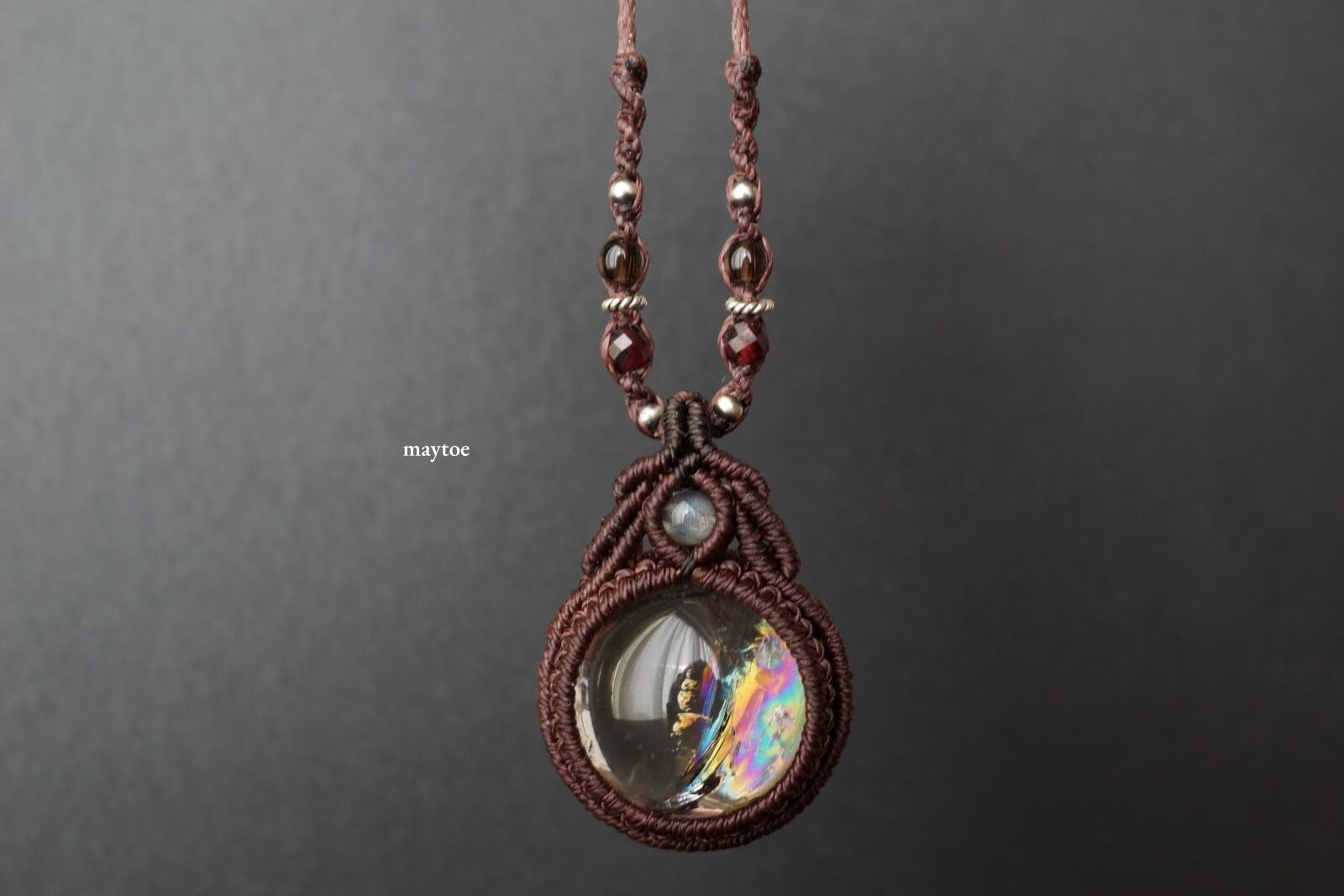 レインボースモーキークォーツ(スモーキーアイリスクォーツ)のマクラメネックレス - magic time -