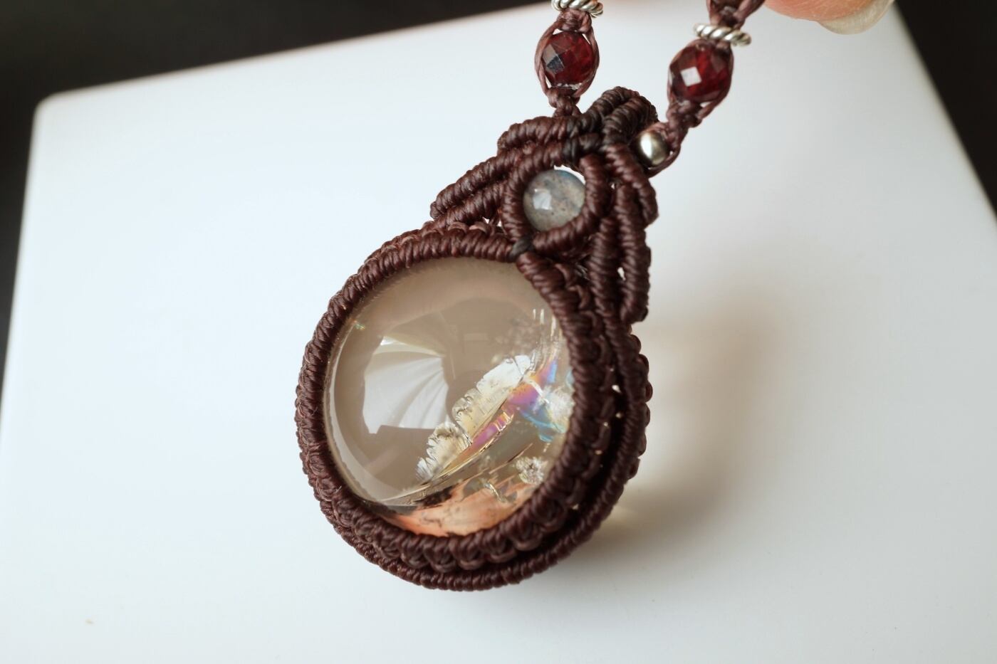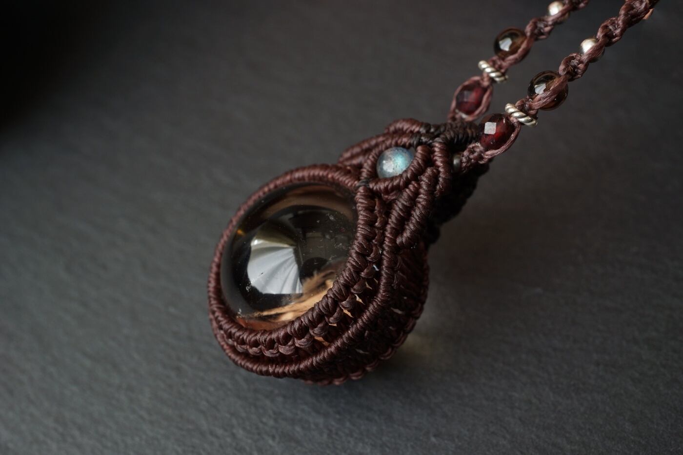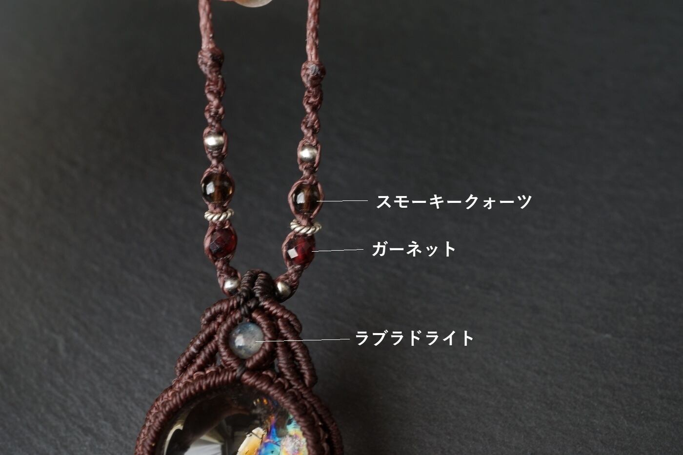 レインボースモーキークォーツ(スモーキーアイリスクォーツ)のマクラメネックレス - magic time -