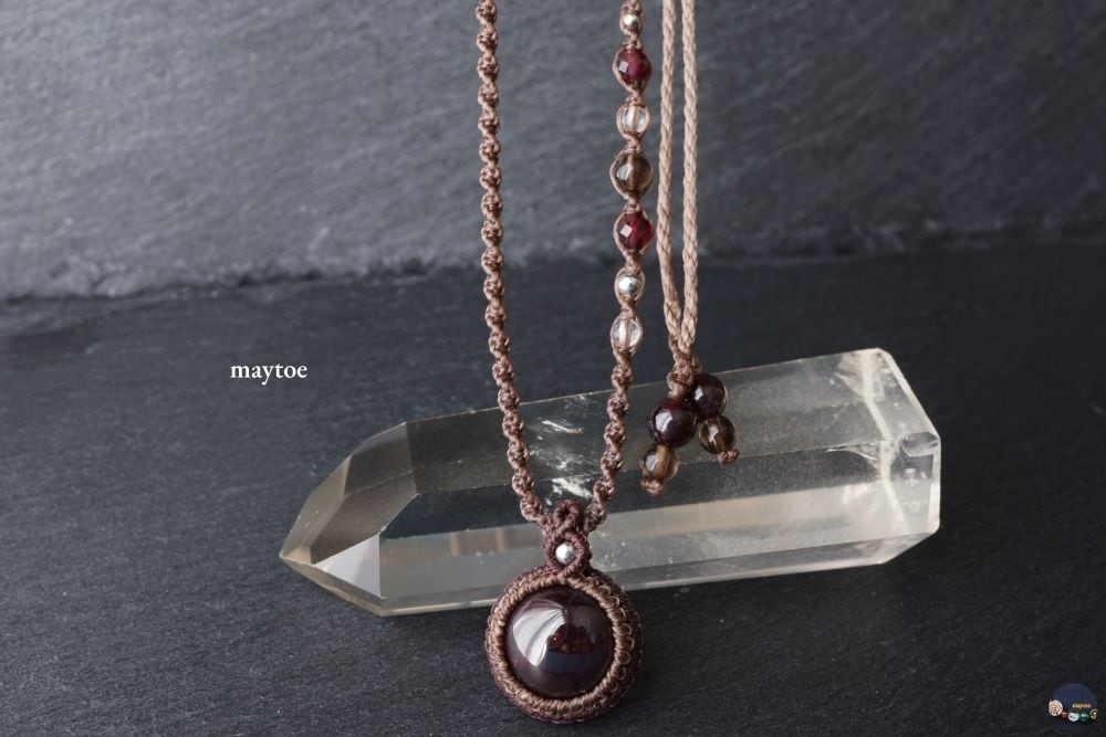 (4条スター効果)が確認できる、スターガーネットのマクラメネックレス。