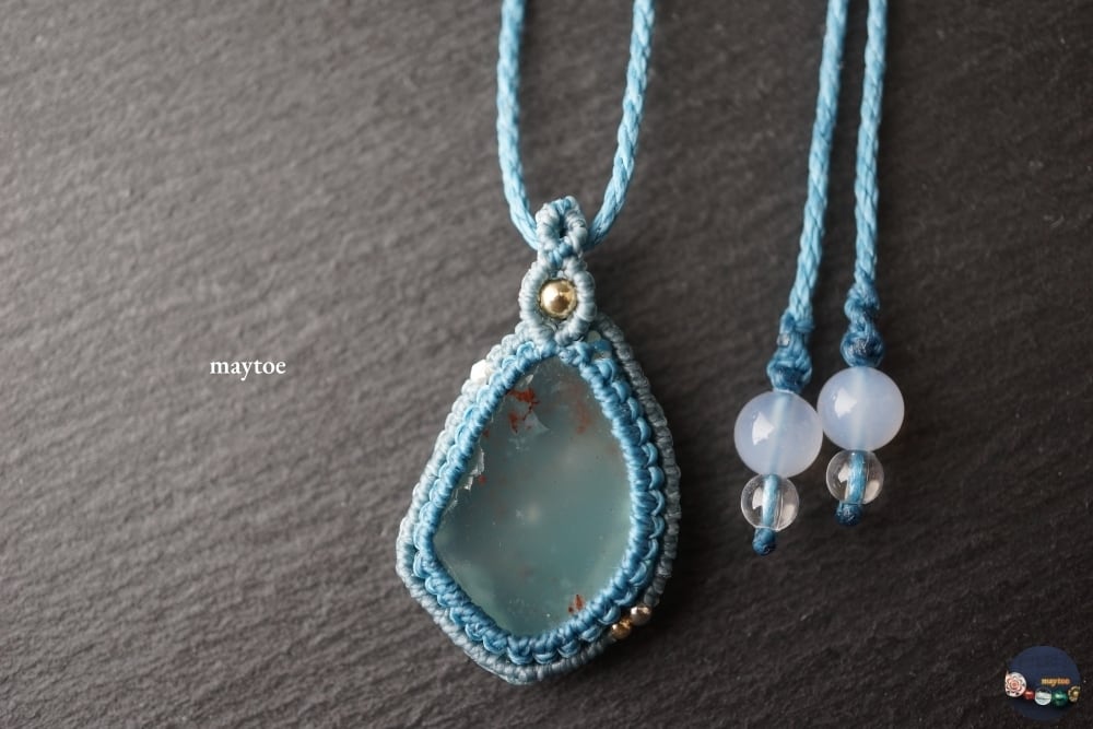 アクアプレーズ(天然グリーンカルセドニー)のマクラメネックレス【一点物】