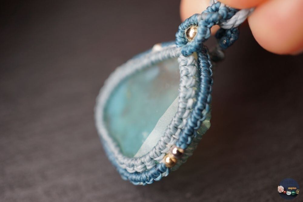 アクアプレーズ(天然グリーンカルセドニー)のマクラメネックレス - light blue -【一点物】