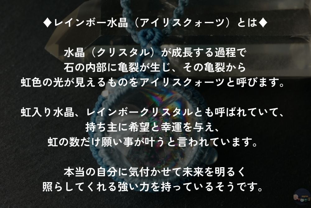 鮮やかな虹を放つレインボー水晶(アイリスクォーツ)と