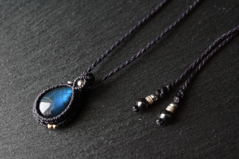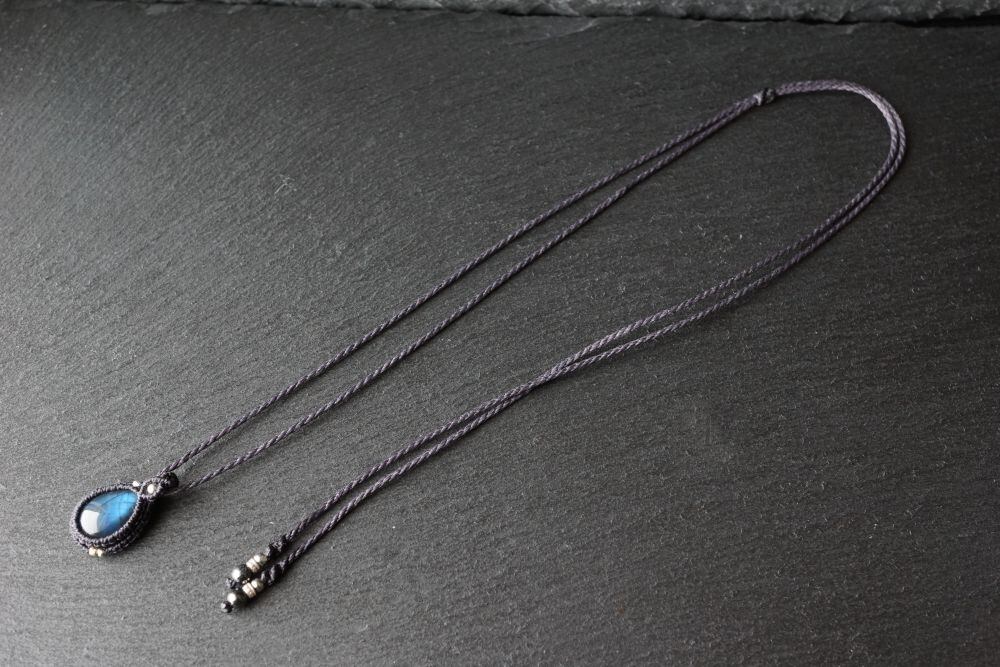 マダガスカル産ブラックラブラドライトのマクラメネックレス。