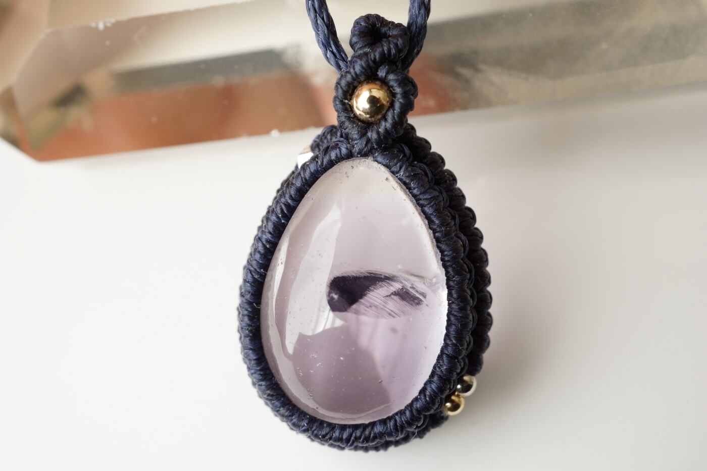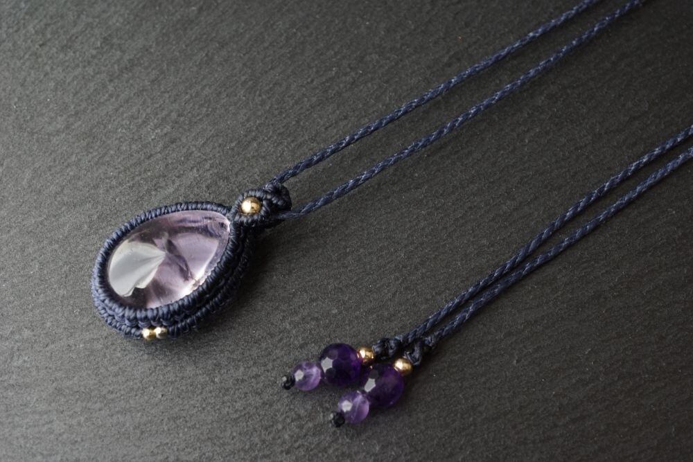 クリアで爽やかな色合いの宝石質アメジストのマクラメネックレス。